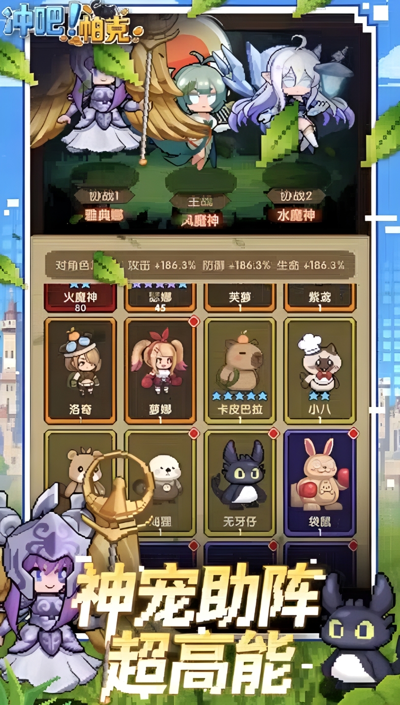 游戏中提供海量原创萌宠供玩家招募,每只宠物拥有唯一外形设定与专属成长路径。其技能体系分为基础天赋、主动技、被动增益三类,支持跨宠物技能融合与策略性合成。玩家可通过组合不同特性,构建具备暴击强化、反伤反弹、群体控制等效果的定制化战斗流派。所有宠物均可随角色同步升级,并在战斗中触发协同技,成为贯穿全流程的核心战力支点。