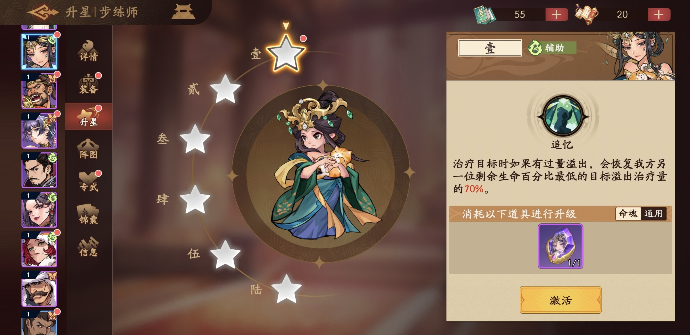 多练师这个角色可以说是平民玩家前期最实用的治疗武将之一,利用自身天赋可以使其对低血量目标治疗量大幅度提升,即使出现溢出情况,也可以用于治疗其他角色,所以根本不会浪费。在养成的高命之后,可提升对治疗角色的攻击。其必杀技能释放的单体治疗,可享受到暴击加成,所以单体治疗量极高,有效保证了队友的生存能力,尤其是在辅助单核输出的情况下,更是少不了这样的单体治疗。在使用的时候,锦囊方面推荐选择洞烛先机四件套或者是桃园结义四件套,然后加任意生命两件套就可以了。洞烛先机可以解除友方身上的负面状态,桃园结义可以增加单次治疗的目标数量,保证生存。