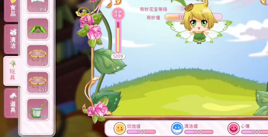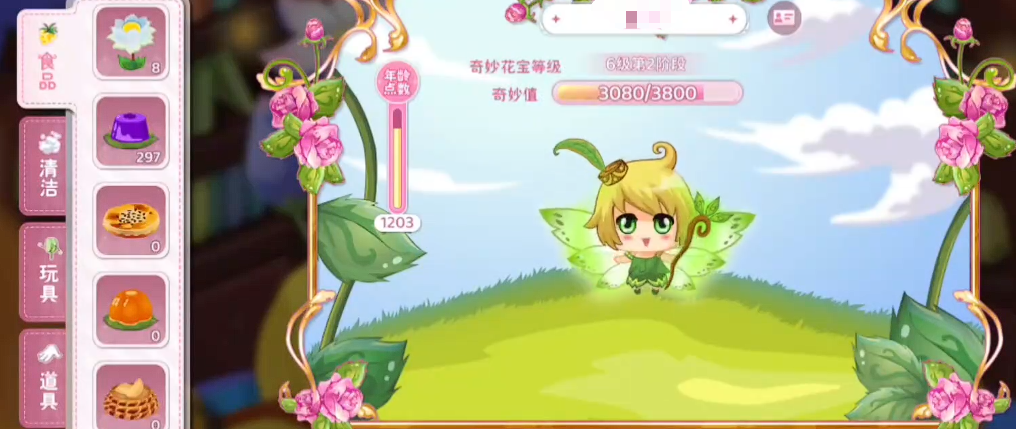 除基础喂养外,花宝互动还包含清洁、玩耍两大日常行为模块。二者均不消耗道具,每日登录后即可免费使用,长期坚持可稳步提升好感度——而好感度数值将按比例转化为额外经验加成,间接加快升级速度。此外,游戏内还设有一次性使用的功能性道具,用于临时强化花宝的经验获取量或属性成长值,玩家可根据当前资源状况与养成目标灵活选用。