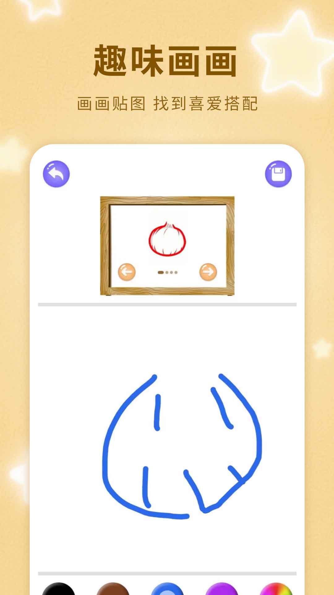 涂鸦绘画版提供海量的填色模板供我们涂鸦,我们只需要在对应的人物或者事物身上,涂上相对应的颜色,即可得到一幅自己涂鸦的“画作”。除此之外,我们还可以在app上练习简笔画,通过简单的线条勾画出一个又一个生动的形象。
