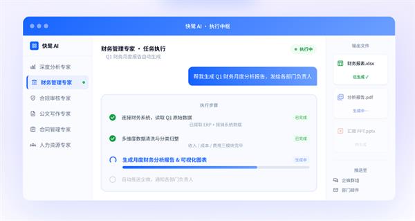 以快鹭智能办公旗下“AI领域专家”为例,作为业内领先的企业级智能体,其深度满足用户对安全部署、技能治理、合规与审计、用户权限上的4大刚需,通过“Skill注入、数据穿透、知识沉淀”三步走,让客户在私有化部署的安全前提下,通过一个IM系统,以自然语言即可调用多系统数据,完成从需求到执行的闭环。无需改变任何工作习惯,让AI成为企业的“数字员工”,高效又好用!