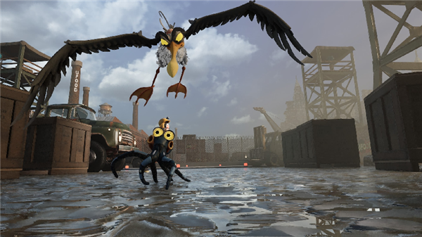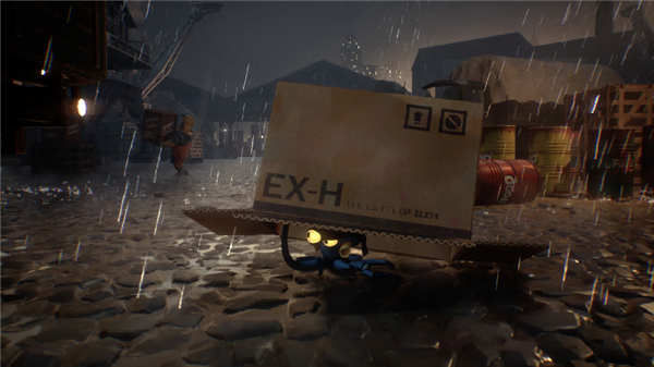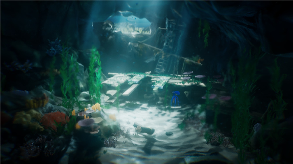 《达尔文悖论!》最直观的亮点,莫过于其堪比皮克斯短片的视觉呈现。作为一款采用虚幻引擎制作的横板游戏,制作组用三渲二技术打造出了层次丰富的场景:从肮脏杂乱的工业码头、冰冷精密的水下实验室,到充满荒诞感的外星办公室,每一处场景都细节拉满,运镜流畅自然,仿佛在为玩家呈现一部互动式动画电影。主角达尔文的塑造同样出色,这只蓝色小章鱼有着凸出的大眼睛和丰富的肢体语言——被压扁时眼珠滚落的滑稽模样、潜行时小心翼翼的神态,都能将它那可爱又机智的个性充分展现,哪怕没有一句台词,也能传递出不输许多3A角色的情感张力,成为玩家旅途中的完美陪伴。