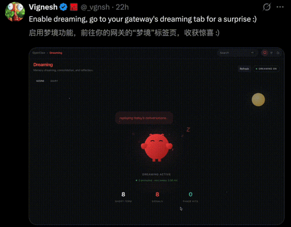 同时新增“Dreaming”记忆机制,模仿人类浅睡眠、快速眼动、深度睡眠三阶段,自动整理短期记忆并筛选重要信息写入长期记忆,让AI具备反思进化能力。