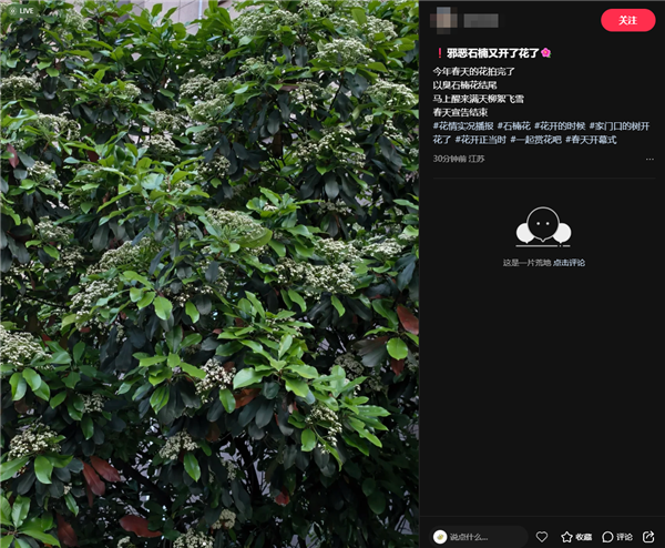 左右为“楠”的季节又到了 石楠花香惹争议 网友:闻到就会干呕