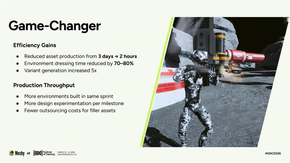 当然,Meshy融入游戏研发管线的过程也不是一帆风顺的,比如在Technical Art Games内部,美术人员一开始对此有所抵触。不过Meshy提升开发效率的效果是实打实的:
