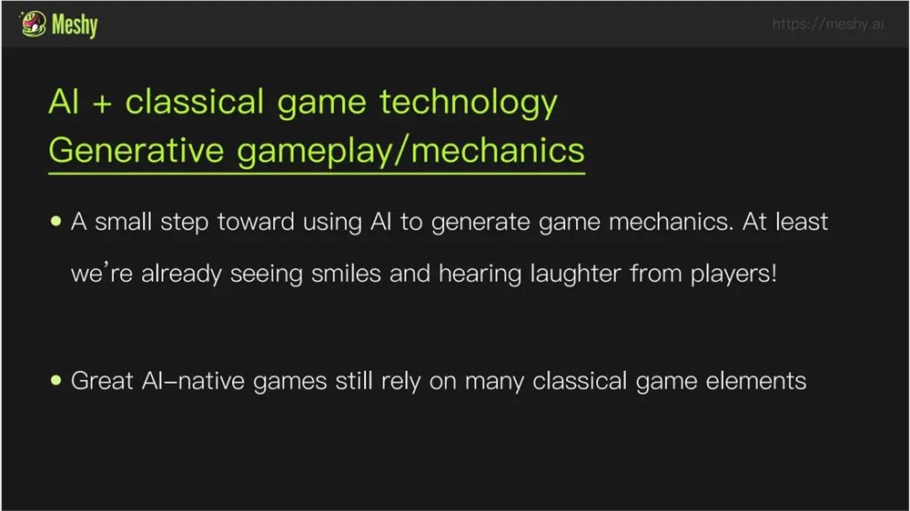 像胡渊鸣说的,不指望一步登天。作为服务商,他们能向市场需求看齐,踏踏实实地提供增量,去做现有管线里的一件趁手工具;作为开发商,他们又能在开发游戏的时候用传统引擎兜底,让AI去实现新的玩法,给玩家带来乐趣。