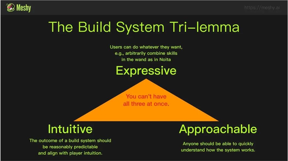 这个“不可能三角”指的是,传统游戏受限于人工编写的底层规则,往往很难同时做到表达力强、直观且易上手。