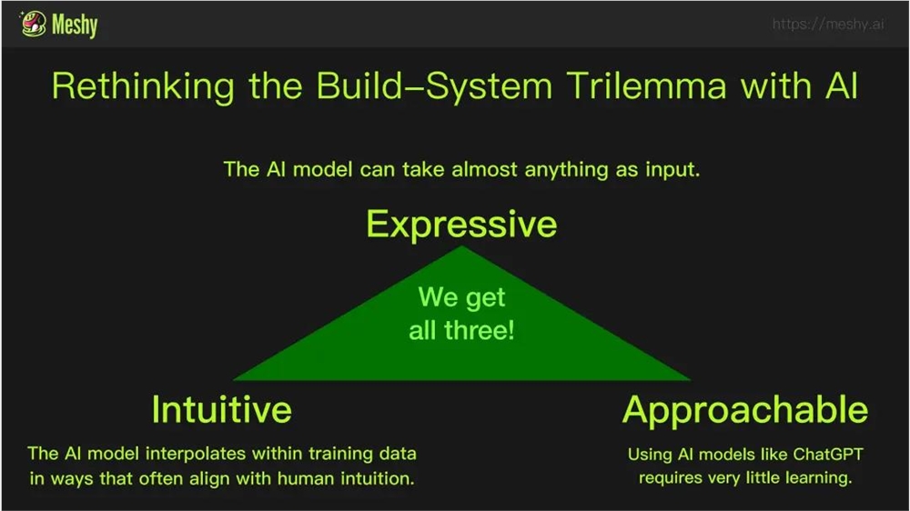 在胡渊鸣看来,AI能让游戏变得更好玩,是因为它解决了传统游戏开发里的“不可能三角”。