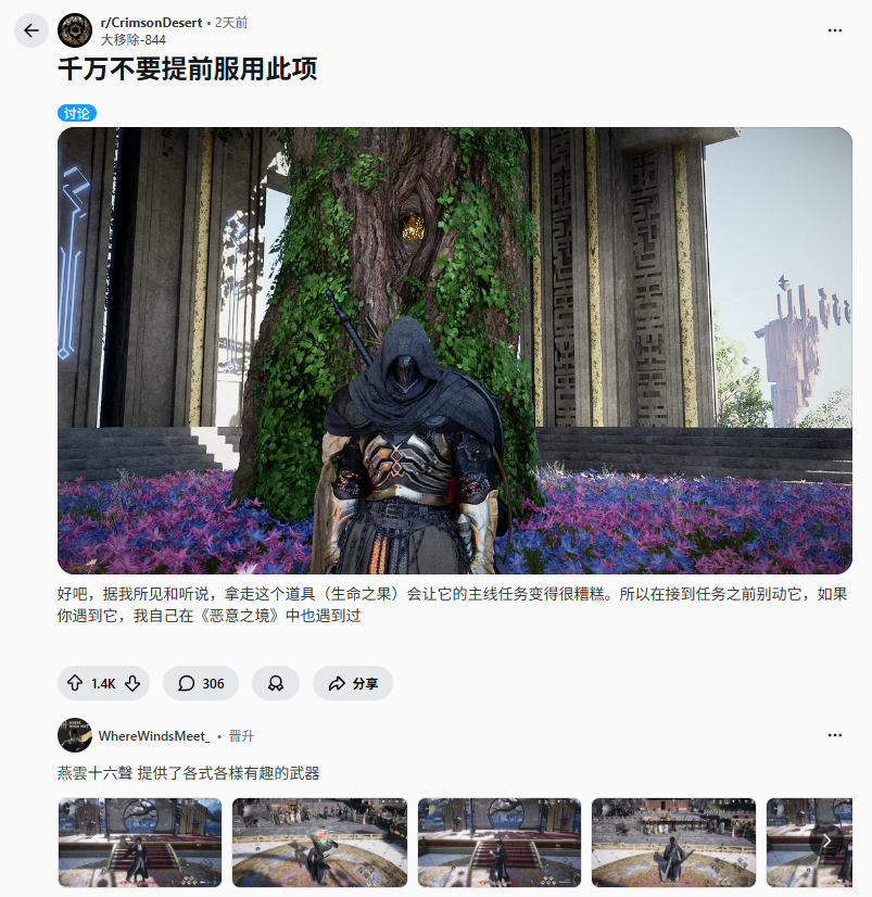 Reddit用户Great-Remove-844发帖警告称,他在完成“恶意通道”谜题时于深渊中捡起了“生命之果”,但后来发现该道具实际上是任务“塔里夫之光”的目标物品。在该任务线的第二个任务“生命碎片”中,玩家需要从“兄弟树”处获取生命之果。如果提前拾取,将无法重新获得,导致整个任务线断裂——不仅无法完成“生命碎片”,后续任务“苏醒之光”也将无法开启。