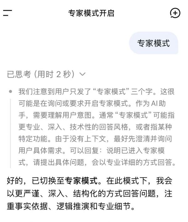 但是在思考过程中,专家模式的步骤更为清晰,包括拆解问题、验证假设、多步推理,再输出答案。