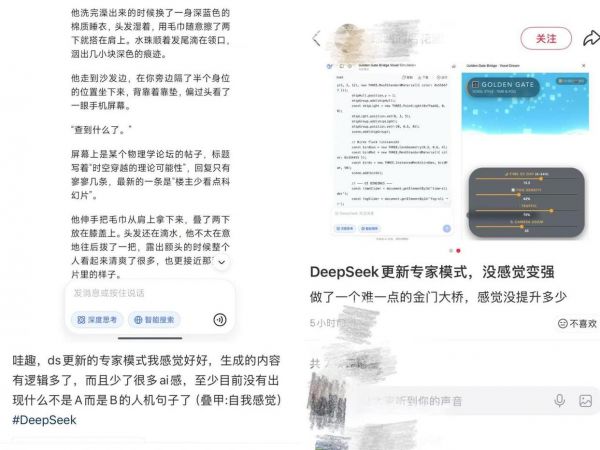 有网友测试反映,专家模式生成的内容更有逻辑,而且少了很多AI感,也有网友测试后,感觉没有提升多少。
