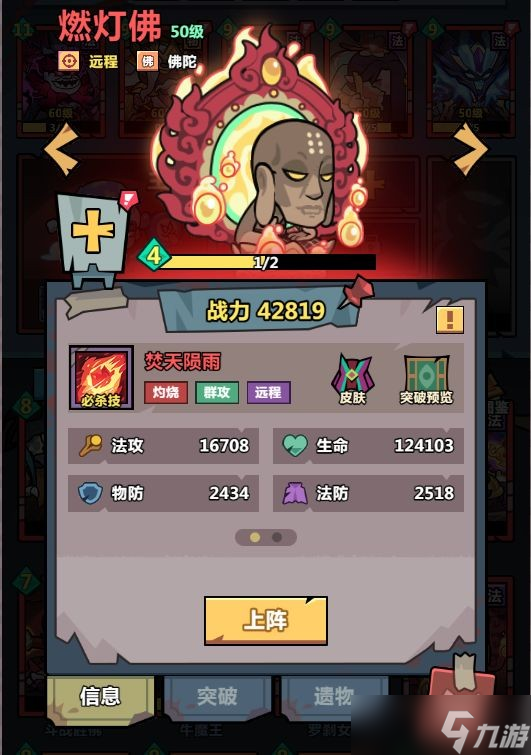 突破效果:满星可升级至15星,3星可以增加普攻回能;6星增加灼烧伤害,可以有效造成攻击力伤害并且处于灼烧的敌人死亡时会爆炸;9星被动技能每提升1层,其受到的所有灼烧伤害提高5%,最高可以到50%;12星攻速提升显著,15星最终增伤提升增高。