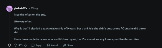 也有经历过类似关系的网友分享个人经历,称虽然自己也曾遭遇情绪失控的伴侣,但所幸没有发展到毁坏财物的程度。当然,也有网友表示该帖子真实性待确认。