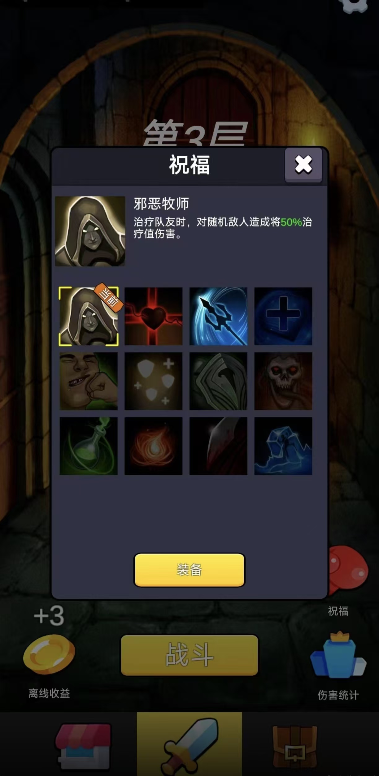 《一起来爬塔》采用复古像素美术风格,核心围绕“勇者招募—培养—编队—闯关”循环展开。初始仅开放基础职业,后续通过宝箱抽取、成就解锁、活动兑换等方式获取稀有英雄,每位角色拥有独立血量、攻击力、攻速、暴击率四维成长模型。装备系统支持词条随机生成与洗练重铸,宝箱按层数分级(铜/银/金/传说),掉落对应阶数的武器、防具与特效饰品,有效提升通关效率与阵容容错率。