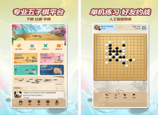 专注五子棋垂直领域的对战平台,提供AI陪练、残局闯关、天梯排位三大核心模块。AI难度分级明确,从入门到职业级均可适配;残局库收录数百道经典题型,涵盖活三、冲四、禁手识别等关键知识点;对战场次区分大众场与专业场,支持快速匹配与约战邀请,适合进阶学习与日常切磋。