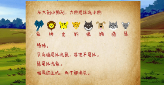 复刻童年经典动物棋玩法,采用翻牌式交互机制:点击方格即揭示对应动物卡片,依据“鼠→猫→狗→狼→虎→狮→象→鼠”循环克制链展开策略对抗。每局胜负不仅取决于记忆与预判,更考验临场决策能力,支持双人轮流对战与AI单人挑战。