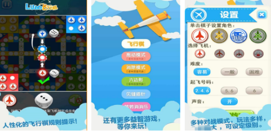 遵循标准飞行棋规则,掷骰行棋、跳飞、撞回等机制完整保留,同时加入自动托管与快捷重投功能提升流畅度。内置超百关卡图谱,含节日主题地图与动态天气效果。UI采用明快配色与圆角卡片设计,兼顾怀旧感与当代视觉审美。