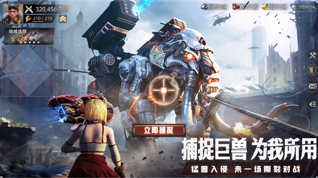 在游戏里只拥有基地远远不够,玩家需要借助各种科技力量,完成基地升级,争取在原本的末日废墟中,重建人类文明,游戏里每个巨兽特性各不相同,可以直接驯化使用,也可以针对巨兽特性组成特定的战斗梯队,带领机械部队参与对战,在广袤的大地图上,领土和资源非常稀缺,可以借助各种机械巨兽完成资源争夺,获取资源之后,玩家可以对原有的基地进行升级,提升资源产出效率,争取让自身拥有更强战力。
