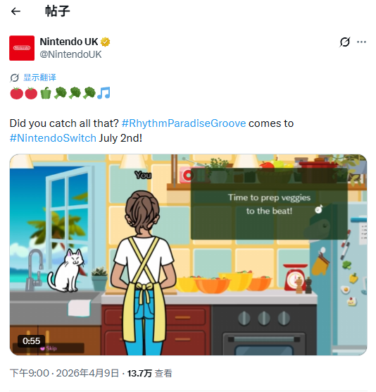 任天堂近日确认,《节奏天国》系列最新作《节奏天国:奇迹之星》将于2026年7月2日登陆Nintendo Switch。该消息由任天堂官方信息应用Nintendo Today率先发布,随后在Twitter同步公开。