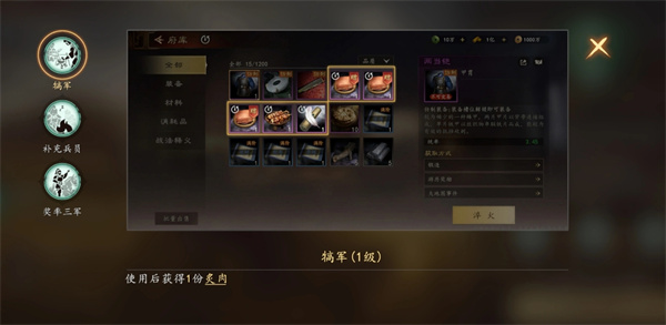 效果:使用后直接获得1份「炙肉」(消耗品,可用于武将恢复、任务提交等),无冷却限制,是日常资源补充的稳定来源。