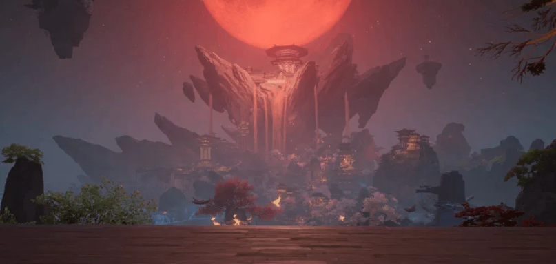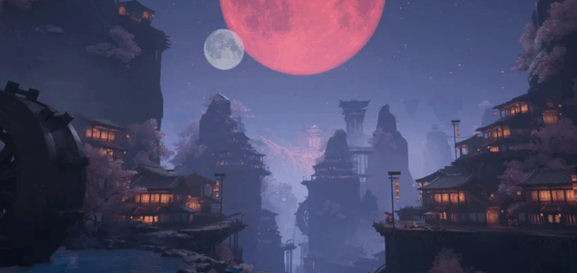 这个地方有很多妖怪循迹前往,逐渐变成了诡市,虽然妖界是隔绝日照的晦暗领域,但双方族长以双瞳起阵化月,照亮了这方天地,所以这个地方不存在太阳光源,映照天地的是永远高悬的幻月,给人感觉更加神秘奇幻。