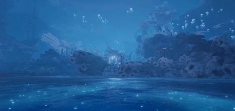 仙长进入此地在入口栈道处驻足可以看到的大片荧光海,这是沿着山体滴下来的月浆,流淌的月华变成灵海滋养了整片界域,这里还有各自自由的妖怪们,羽族会呆在高处,水族喜欢呆在水中,各族类习性不同从山巅至水底应有尽有。