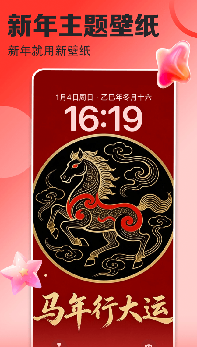 综合性壁纸服务平台,静态壁纸总量突破百万张,全部为4K高清无水印版本。风格覆盖文字创意、星座运势、情侣互动、明星写真、自然景观、二次元文化、简约设计等全品类需求。同步提供动态壁纸、视频锁屏、来电彩铃视频等内容,日均更新超万张,紧密跟进节日节点与热点事件。除壁纸外,还集成头像定制、聊天气泡样式、入场动画、桌面挂件等全套手机美化组件。