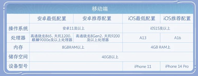 想要游玩这款游戏,尤其是想要拥有体验感良好的玩家们,市面上的各种设备配置当然是越高越好,而对于这个游戏它的最低配置要求也不低,首先就是移动端的玩家们,无论是安卓还是iOS的玩家,想要游玩这款游戏,那么预留的内存空间都必须是40GB及以上,而这仅仅是存储空间的要求,运行内存则一般都是需要玩家们拥有更高的运行内存,因为只有这样才会有更高的频率刷新让玩家们在游玩时同时运行更多的程序,这一点安卓和iOS需要的条件最起码得分别为8GB以上以及4GB以上。