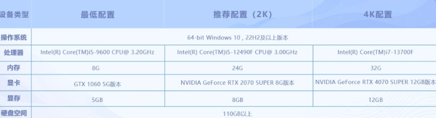 先说配置这块。官方给出的最低配置要求内存是8G,但实际玩下来,8G根本不够用,至少要16G才能跑到60帧左右。想要2K画质的话,处理器建议用I5-12490F,内存24G,显卡RTX 2070 SUPER 8G版本,硬盘留出110G以上的空间。如果想冲4K,那就得上I7-13700F,内存32G,显卡换成RTX 4070 SUPER 12GB,硬盘同样110G起步。