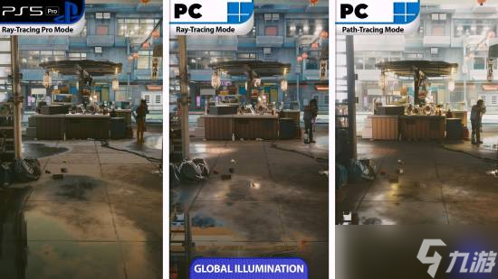 全局光照方面,PC平台仍具优势,尤其在启用完整光线追踪及路径追踪技术后,明暗过渡与间接照明的真实感更为突出;