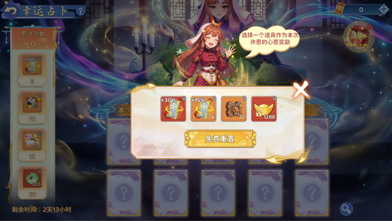 每轮占卜开始前,需选择1个奖励作为心愿奖励。