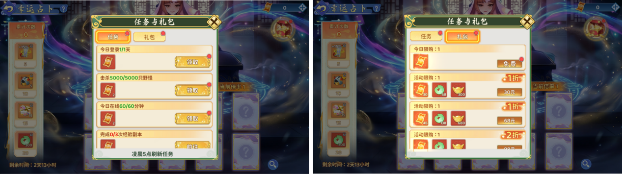 注:每轮占卜结束后,倍数会清零,不会延续到下一轮占卜。
