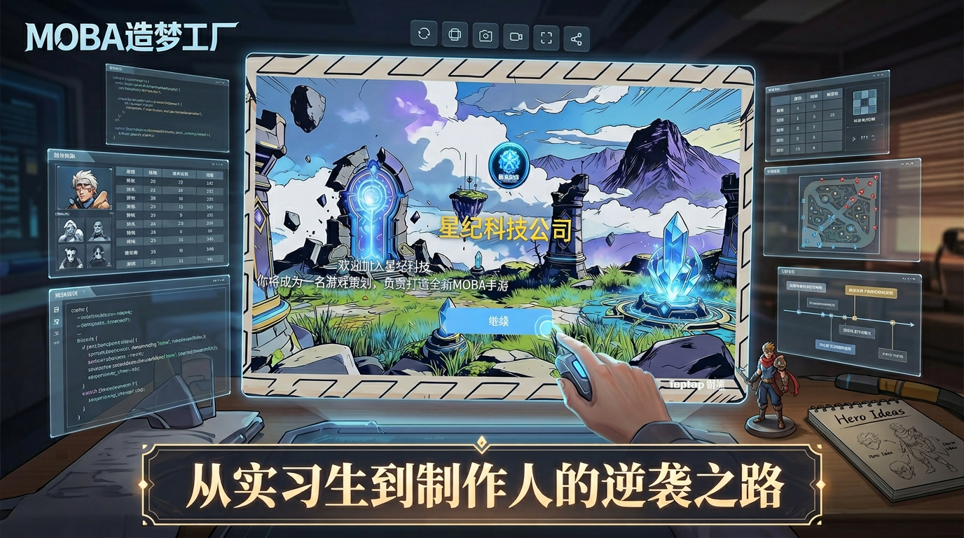 扮演MOBA游戏策划,设计英雄、平衡数值、管理皮肤销售,从实习策划晋升为传奇制作人!