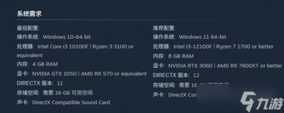 《拾光旅人》最低配置需Win1064位、i3-10100F/Ryzen33100、4GB内存、GTX1050/RX570,16GB存储空间;推荐配置为Win11、i3-12100F/Ryzen71700、8GB内存、RTX3060/RX7600XT,均需DirectX11及以上兼容声卡。