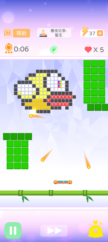 本作以音乐律动为核心机制,玩家通过点击屏幕控制弹球发射时机,匹配节奏击碎动态排列的彩色砖块。关卡数量充足,每关图形布局与背景节奏均独立设计。内置钻石收集系统及强化道具(如连击加成、自动瞄准),助力高效通关。操作门槛低,适合碎片化时间体验。
