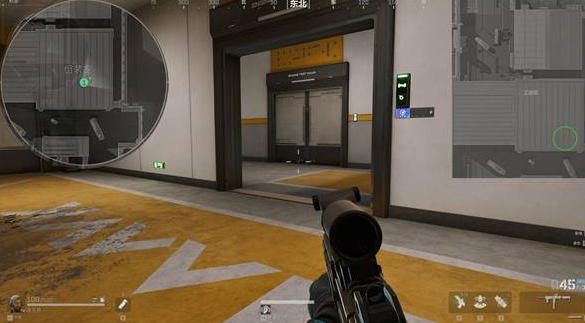 通过主楼入口进入组装室,随后上楼至二楼可见密码门