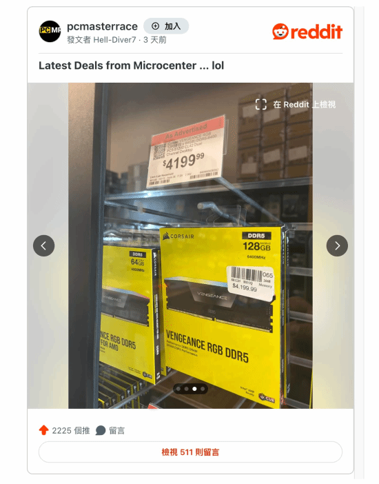 美国128GB DDR5内存条惊现天价 网友看完目瞪口呆:这能买一整台电脑了
