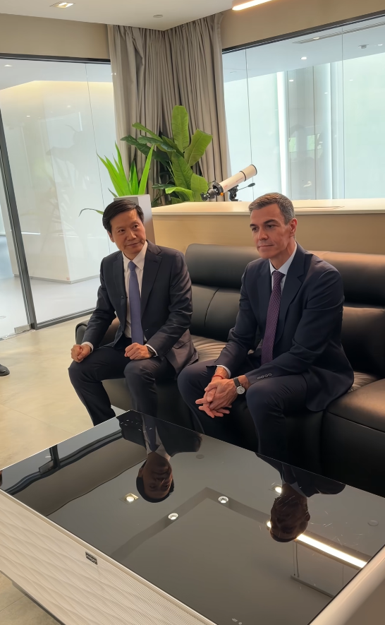 西班牙首相桑切斯访华参观小米科技园 雷军亲自接待 现场体验YU7