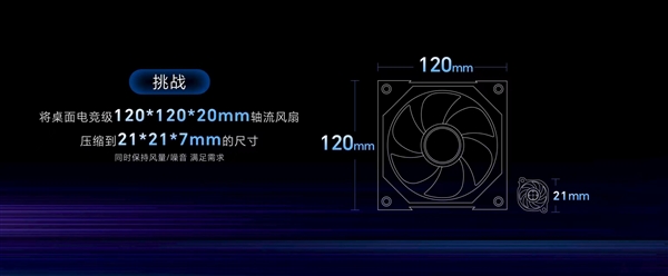 4个轴流风扇是荣耀自研的核心器件,将桌面电竞级120×120×20mm轴流风扇的规格压缩至21×21×7mm,同时保持风量和噪音表现。