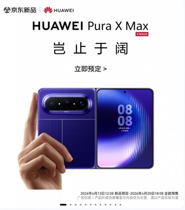 4月13日12点08分,行业首款横向阔折叠手机华为Pura X Max开启预定,并将于4月20日正式发布。目前,京东已同步开启新品预定,消费者支付1000元定金即可参与预定,提前锁定新机。此外,来京东预定华为Pura X Max可享以旧换新至高补贴1000元、Petal One悦享套餐、晒单及分享赢好礼等福利。