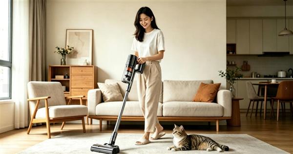 自集尘技术的里程碑式进步自集尘基站的出现,无疑是吸尘器体验的一次重大升级。它通过基站的强力抽吸,将尘杯内的垃圾自动转移至密封的大容量尘袋中。这一设计成功解决了传统吸尘器在倾倒垃圾时容易扬尘、弄脏双手的痛点。特别是对于养猫家庭,日常清理的猫砂颗粒和成团的猫毛都能被基站一次性打包,极大地减轻了日常家务的负担。
