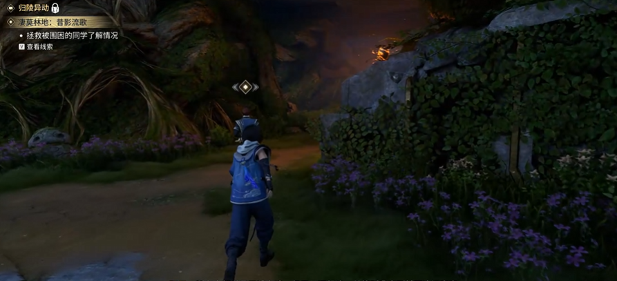 任务起始需先传送至春熙古战场,再进入凄莫林地场景。抵达后沿主路前行自动接取任务,击败沿途小怪并与NPC观风对话。随后跟随其移动至石墙前继续交互,触发后续剧情——需集齐三枚钥匙碎片方可开启封印石门。
