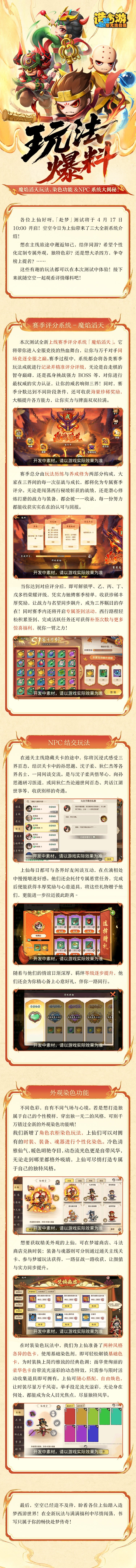 为让西行之路更添新奇与热血,此番空空特意带来三大重磅新玩法——赛季评分、知己结交、外观染色。助上仙一路战得名号、遇得知己、美绝三界~更多有趣细节,且随空空一同往下细看吧!
