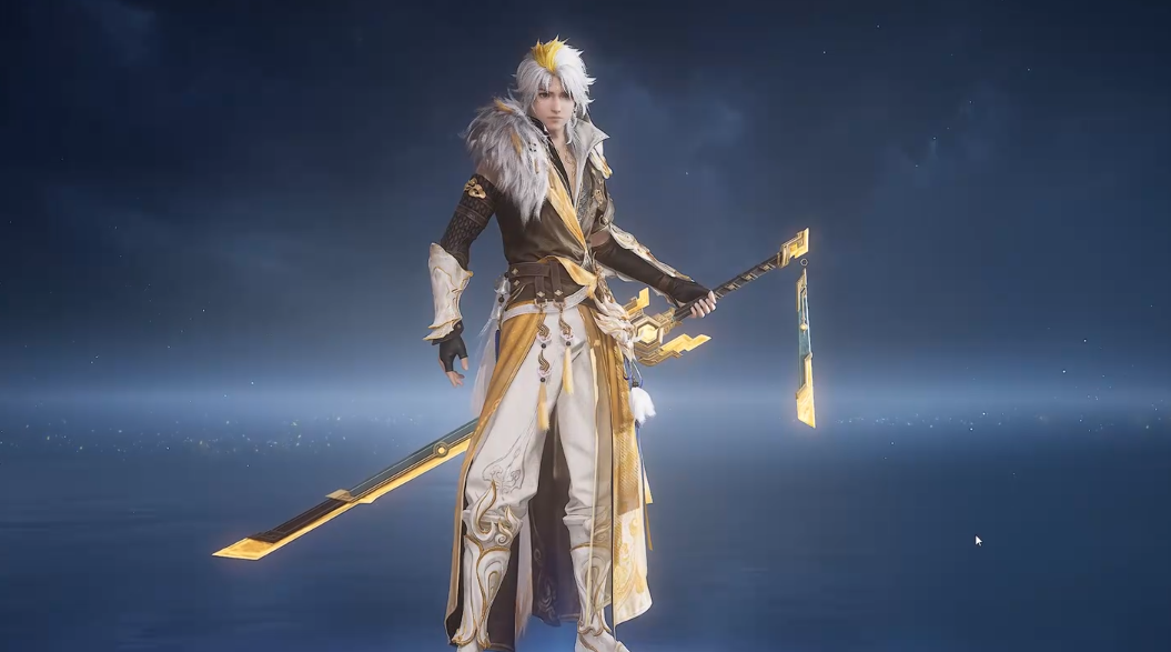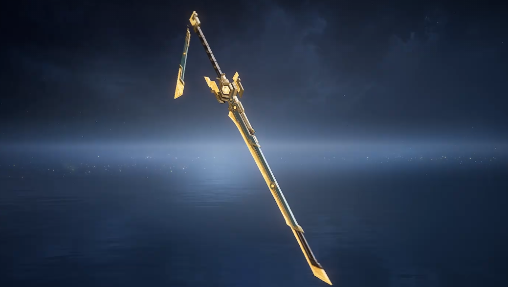 鎏金星辰皮肤专为曜的剑形态设计,仅在装备剑时生效。皮肤启用后,剑身呈现通体鎏金色泽,并附带动态金色粒子光效;战斗过程中,普攻与技能释放均会触发显著的金色拖尾轨迹,整体观感华丽且富有辨识度。