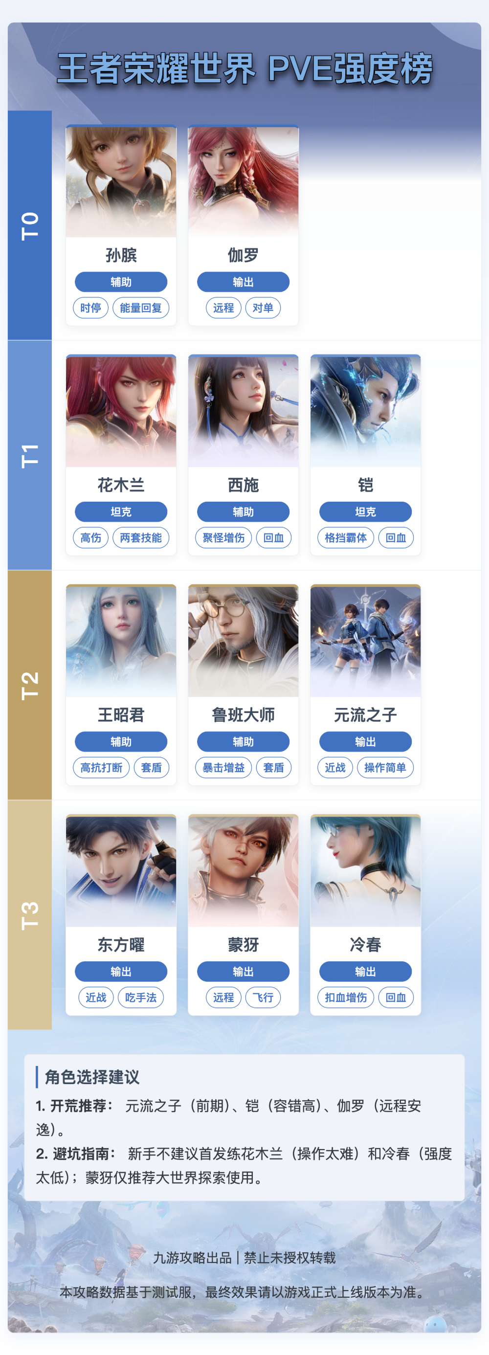 《王者荣耀世界》PVE强度榜 王者荣耀世界PVE英雄排名