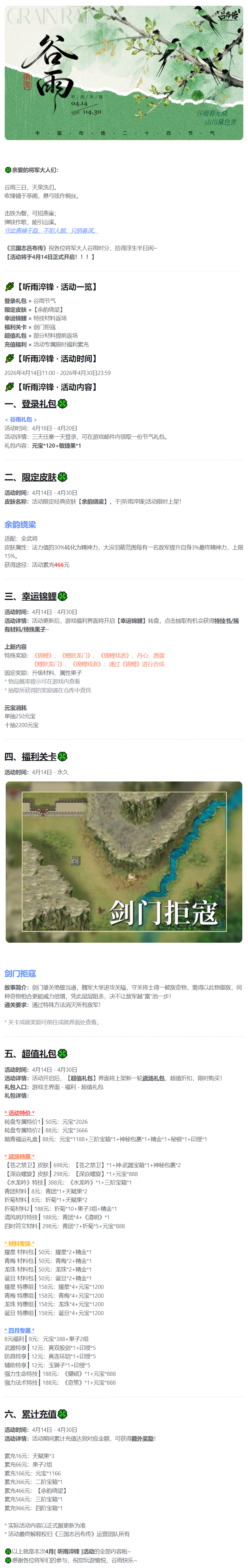 《三国志吕布传》 4月活动丨听雨淬锋