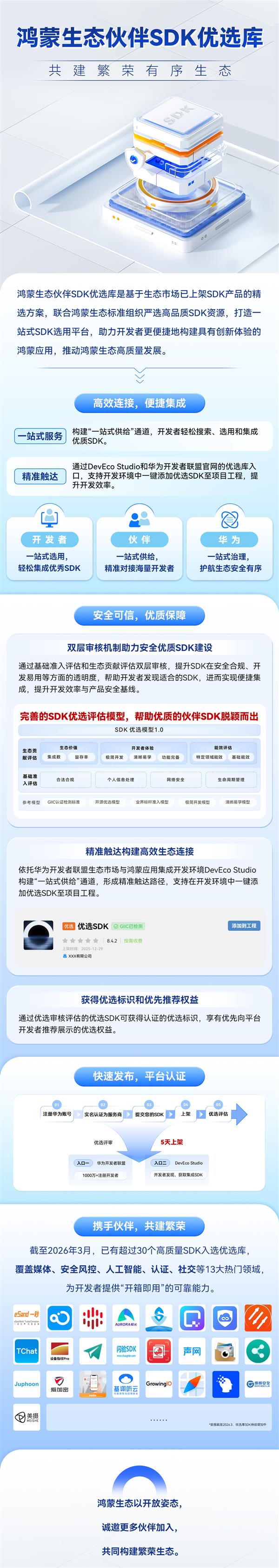 超45个高质量SDK入选 鸿蒙生态伙伴SDK优选库让开发更简单、更安全