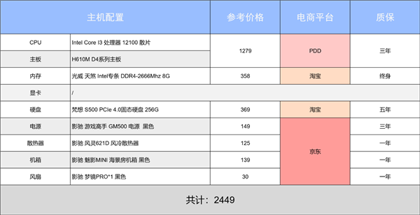 那本期装机推荐从2400元到14000元,根据不同使用场景需求给出了三款配置,配件价格则是电商平台的平均价格,主供大家参考~