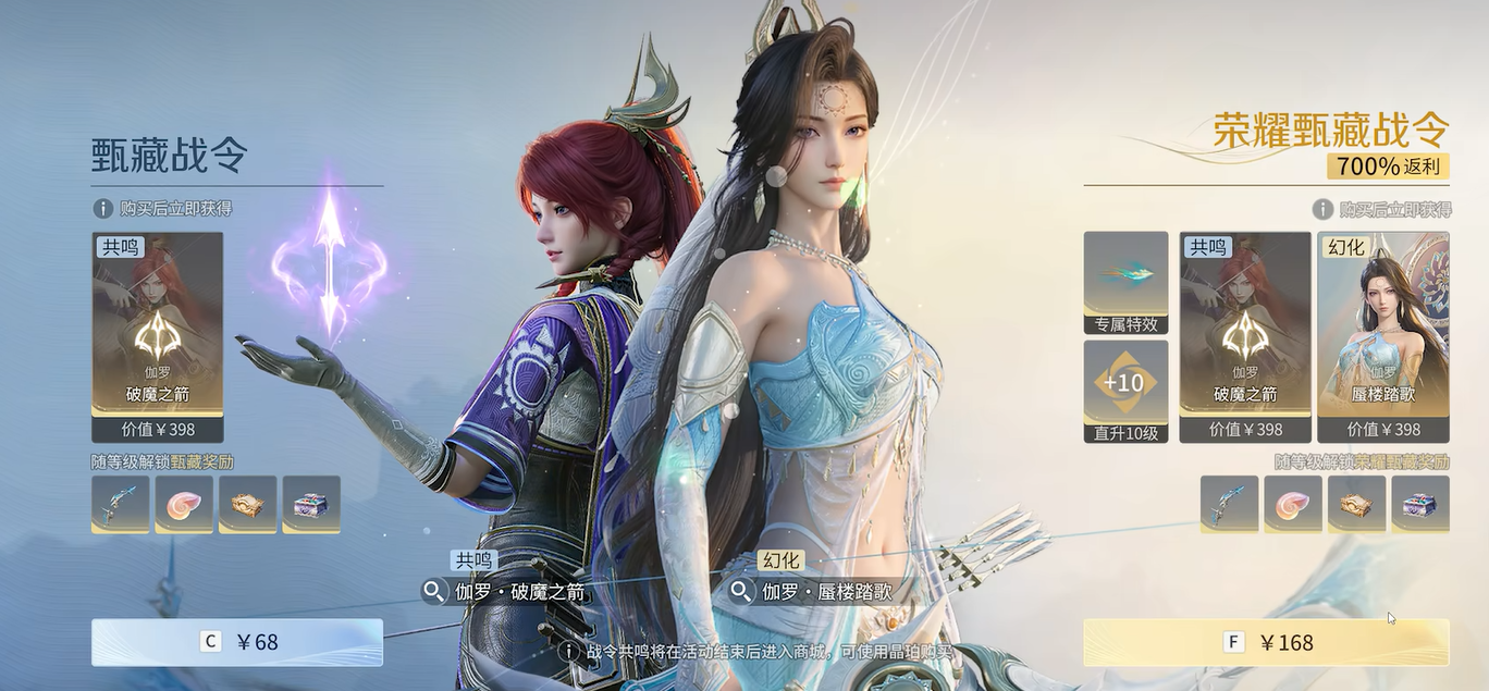 当前赛季共提供两种战令方案:基础档售价68元,尊享档售价168元。两者价差为100元,而该差额所对应的额外内容,正是玩家决策的关键依据。