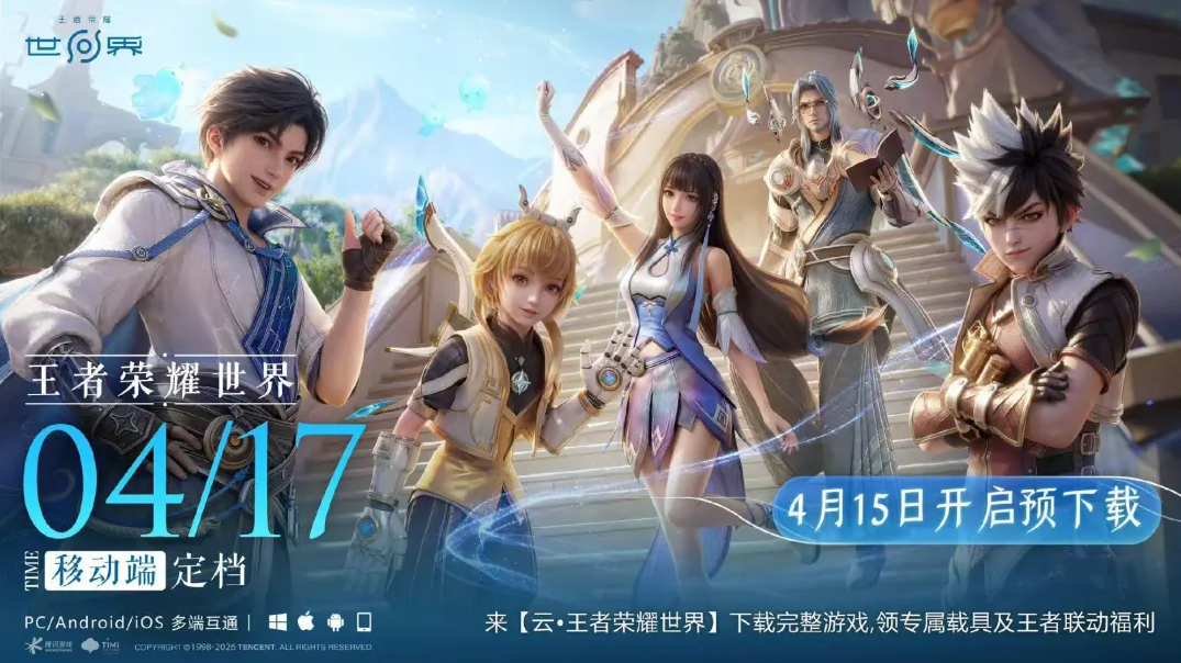 4 月 15 日,腾讯天美工作室群历时六年研发的开放世界大作《王者荣耀世界》移动端预下载正式开启,游戏将于 4 月 17 日早上 7:00 正式开服,届时 PC 端与移动端实现双端互通,同一账号下的角色、进度和资产可跨平台共享。